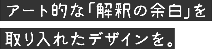 アートのもつこの「解釈の余白」をあえて上手く使ったデザインが、現代の資本主義的デザインに足りないところというか、効率性をわざと無視した面白みを持たせるための材料として、使えるのではないかと考えています。